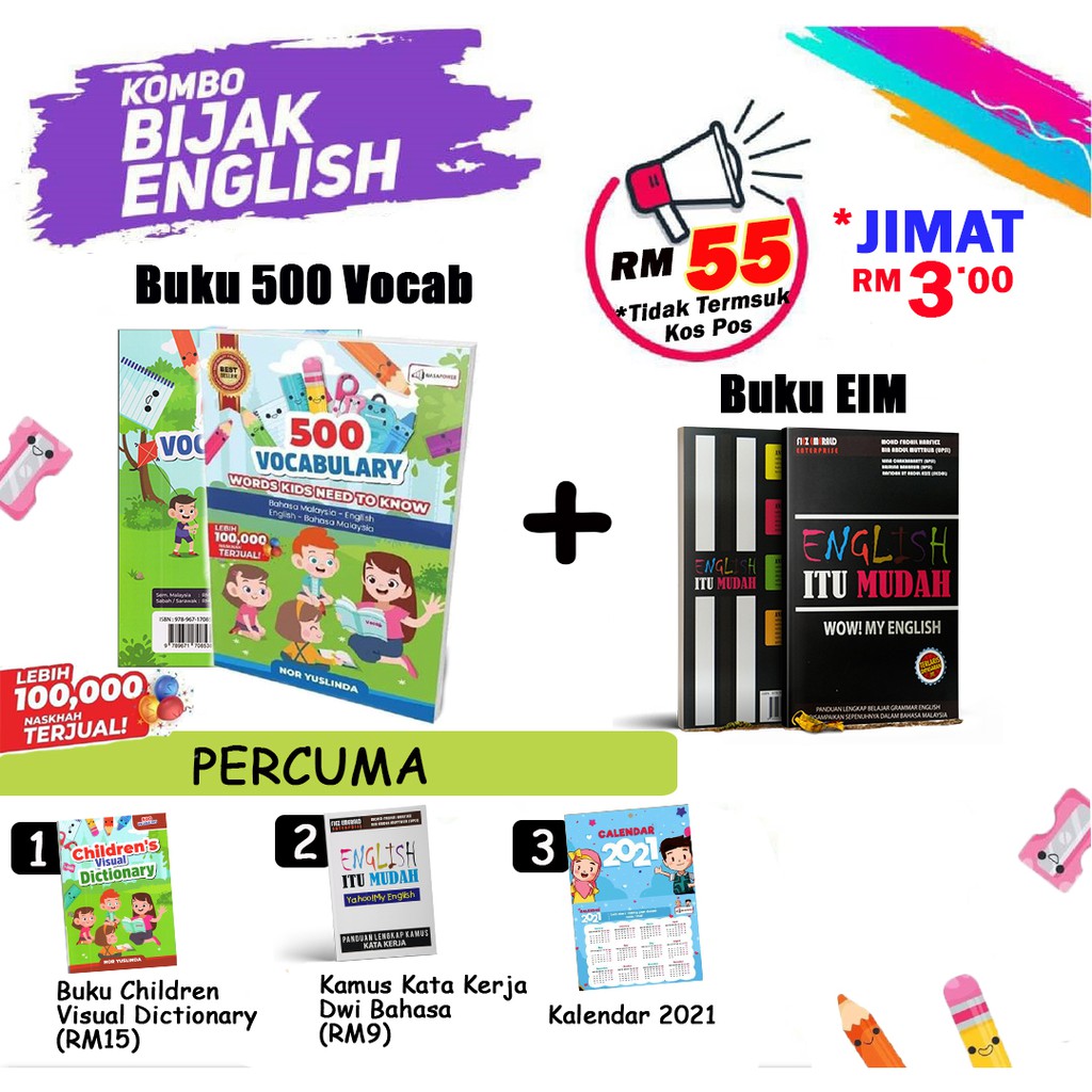 Buku English Itu Mudah / Buku fizikal english itu mudah ini adalah merupakan satu buku yang mengupas semua yang berkaitan dengan grammar english dalam penerangan yang sangat mudah difahami dan disertakan ilustrasi menarik.