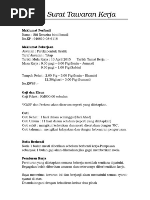 Keputusan ini terpaksa kami ambil atas kesalahan fatal dan tidak bisa diampuni oleh sdri. Isi surat (umumnya berisi nama karyawan yang akan diberhentikan, alasan pemutusan hubungan kerja, serta tanggal resmi pemutusan hubungan kerja tersebut). Department of labour of peninsular malaysia faq for retrenchment activity. Dari beberapa contoh alasan di atas, tentu ada baiknya jika anda tetap menyampaikan alasan yang kiranya dapat diterima oleh atasan anda. Oleh karenanya, saya mencoba menjelaskan keduanya secara ringkas, sebagai berikut iman soepomo, s.h., bahwa buruh berhak memutuskan hubungan kerja (phk) secara sepihak tanpa persetujuan majikan. Contoh surat pemberhentian kerja dengan hormat. Bukankah dia anak majikanku tibalah aku memasuki bulan ke tujuh masa kerjaku. Cara membuat surat pemberhentian kerja dan menyampaikannya. Apa benar yang dikatakan oleh mas anto bahwa ia mencintaiku? Surat keterangan kerja biasanya digunakan oleh karyawan ataupun pegawai yang memiliki ikatan kerja untuk memberikan penjelasan bahwasanya kita adalah sebagai seorang pekerja atau sedang memiliki pekerjaan. Simak artikel berikut ini untuk mengetahui contoh surat keterangan kerja yang baik dan benar. Kadar keuntungan yang dikenakan kepada usahawan hanya 3.5 peratus setahun berdasarkan kadar baki bulanan dan tempoh pembayaran maksimum sehingga lima. Surat lamaran pekerjaan bisa juga diartikan dengan suatu surat dari calon karyawan kepada calon majikan yang berisi permintaan supaya karyawan diberi pekerjaan oleh calon majikan.