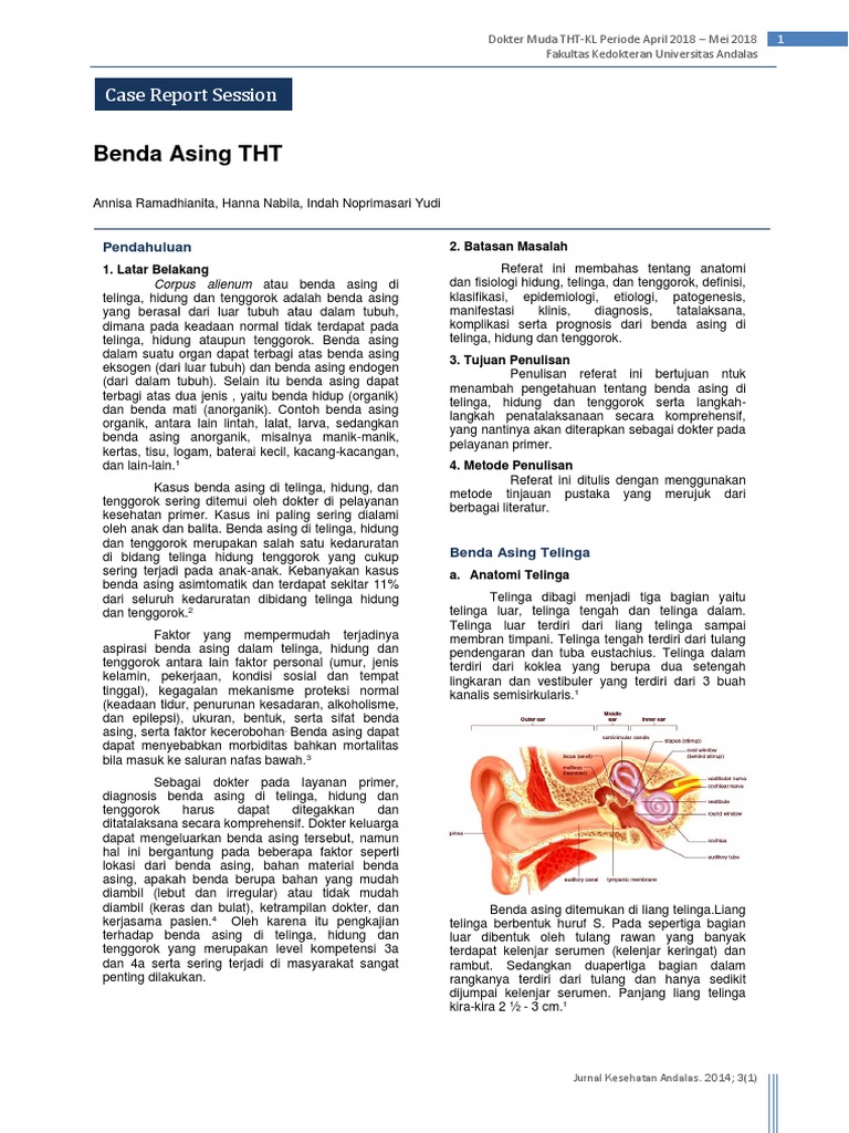 Biasanya berupa mainan kecil dan uang logam. Kedalaman benda asing dihitung berdasarkan prinsip segitiga kongruen. Bila penderita apatis dan tidak tersedia peralatan tersebut, dapat. 8 benda asing dlm tekak etiologi : Mengeluarkan benda asing yang masuk ke telinga alat yang diperlukan 1.