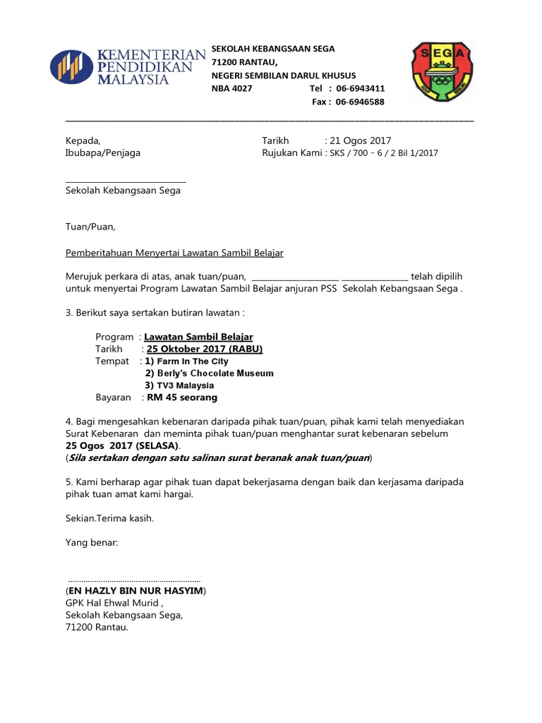 Related : Contoh Surat Rasmi Pemberitahuan Lawatan / Surat Rasmi Tidak Hadir Ke Sekolah Atas Urusan Keluarga Dan Sebagainya Eratuku / Mastrip no 56 b klegen..