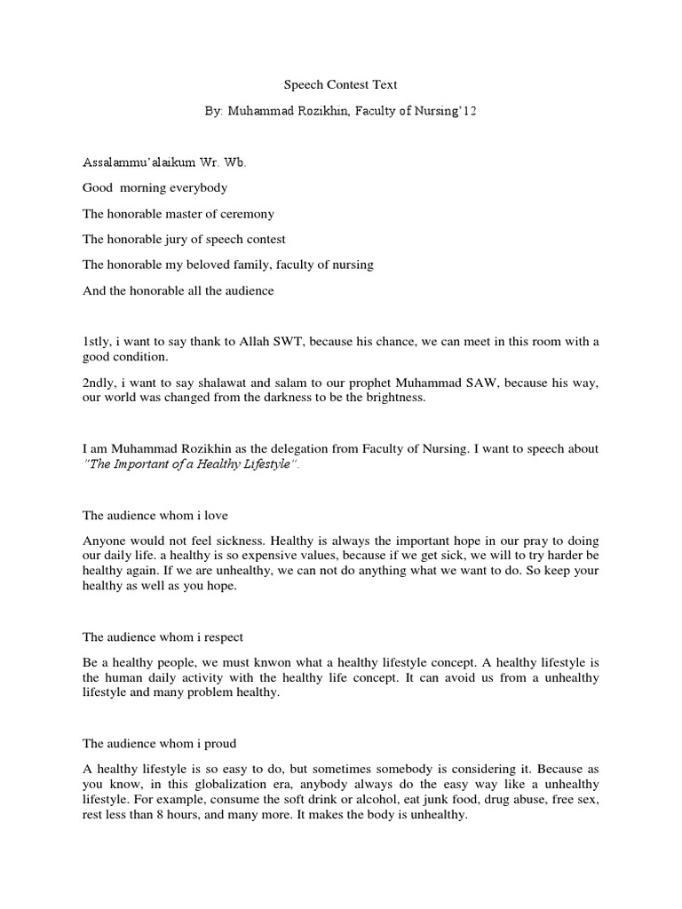 Healthy Living Free Essay Example from studymoose.com Health is the biggest wealth for a human being in his/her entire lifetime. Eat healthy to live healthily. There are three point which i want to discuss to all of u are about the important of having a healthy lifestyle, ways to live healthy and benefit of having a. .essay healthy lifestyle maintaining a healthy lifestyle is important to everyone, whether doing exercises in the gym, eating healthy food or just assuming positive energy in some other way. My name is rachel benner. Concerned about how healthy one's diet and lifestyle are. Generally, a healthy lifestyle is the highest blessing that we should not take for granted. Ideas for informative speech topics on fitness: